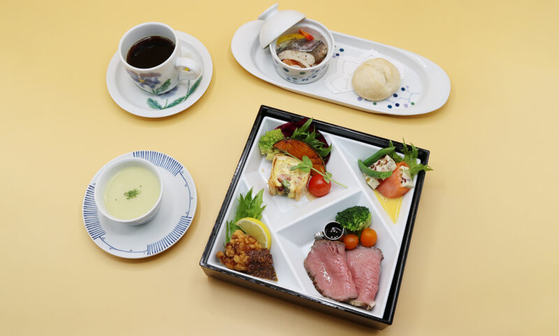 昼食は、松山の老舗料理店「瀬戸内風仏蘭西料理レストラン門田」のシェフが手掛ける「門田フレンチ~伊予灘ミニコース」をお召し上がりください。瀬戸内の穏やかな気候と風土で育った食材を使用した瀬戸内フレンチです。