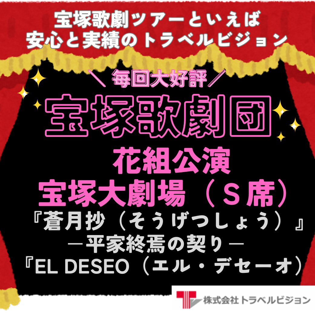 0808【スパ付き観劇プラン】S席で観る!11,990円【2/28土出発】宝塚大劇場 花組公演! グランド・ラメント 『蒼月抄(そうげつしょう)』 -平家終焉の契り- スパイシー・ショー 『EL DESEO(エル・デセーオ)』日帰りプラン