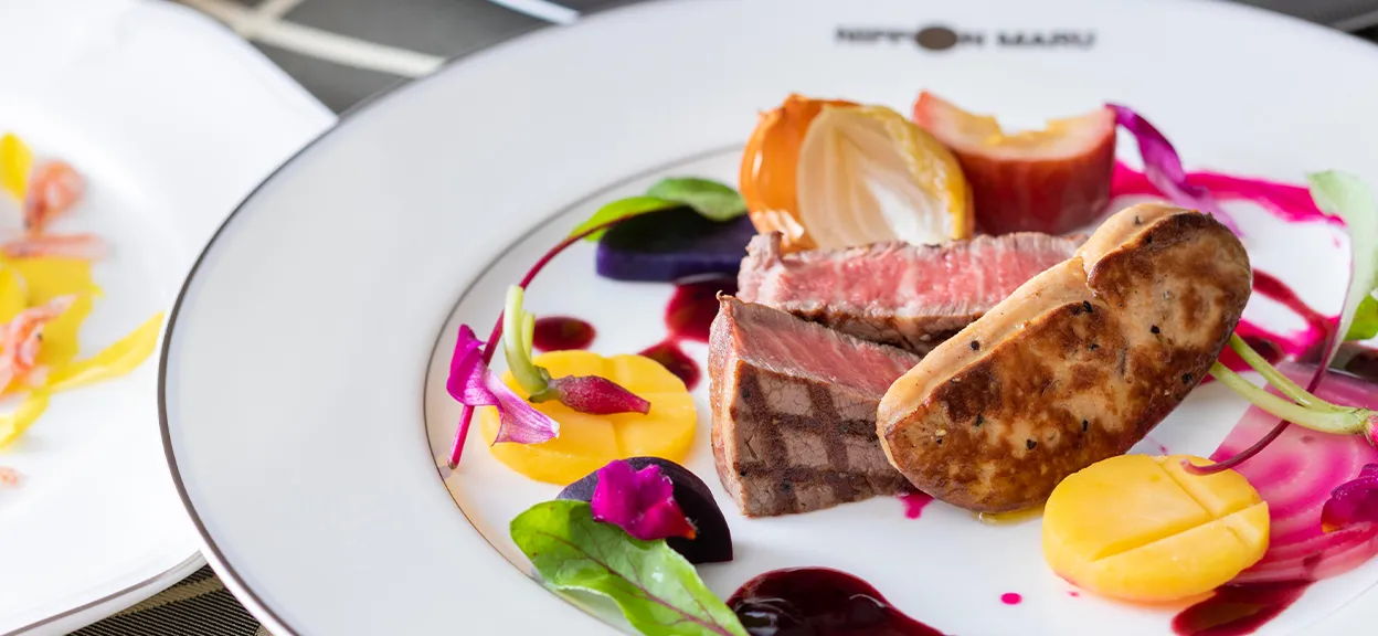メインダイニングでの和・洋コース料理やデッキでのティータイム、テラスレスロランにカフェバー、ルームサービスまで、シチュエーションに応じた多彩な食事が魅力です