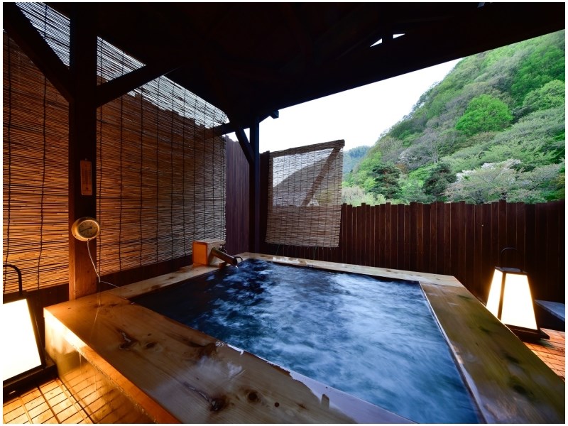 米代川源流の清廉なせせらぎを眼前に、源泉掛け流しの「美人の湯」を多彩なお風呂にて楽しめます。お食事は「きりたんぽ」をはじめとした秋田の郷土料理ビュッフェが人気です