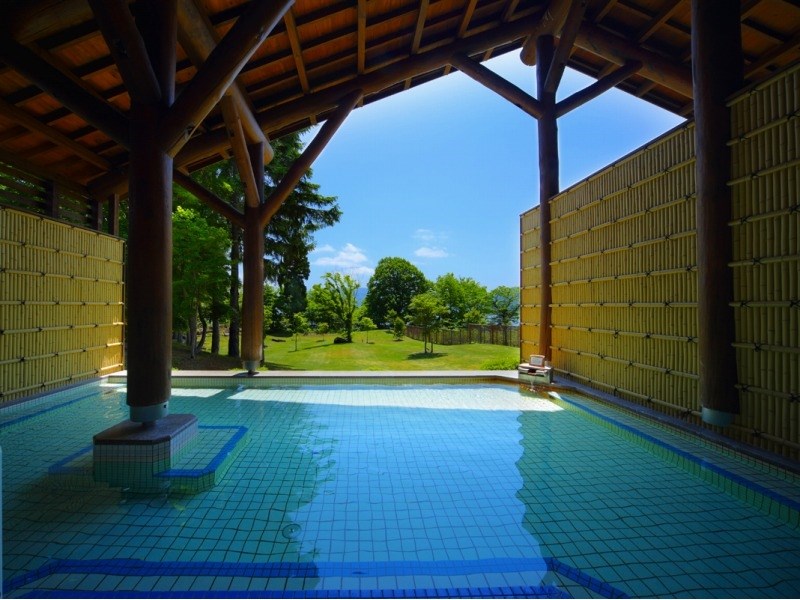 シルクバスは「ミクロの泡で皮膚がきれいになり、肌がすべすべになる」と人気で、「檜の湯」はインフィニティ感覚でまるで御所湖と一体となった不思議な感覚も楽しめます。
