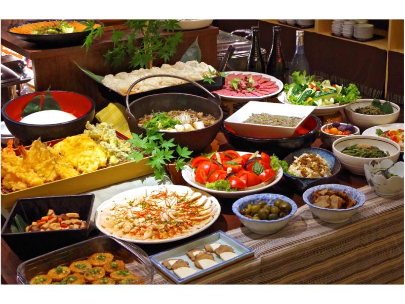 四季ごとに変わる自然豊かな渓谷の絶景や、地元秋田の郷土料理「きりたんぽ」など豪華バイキングも好評です。