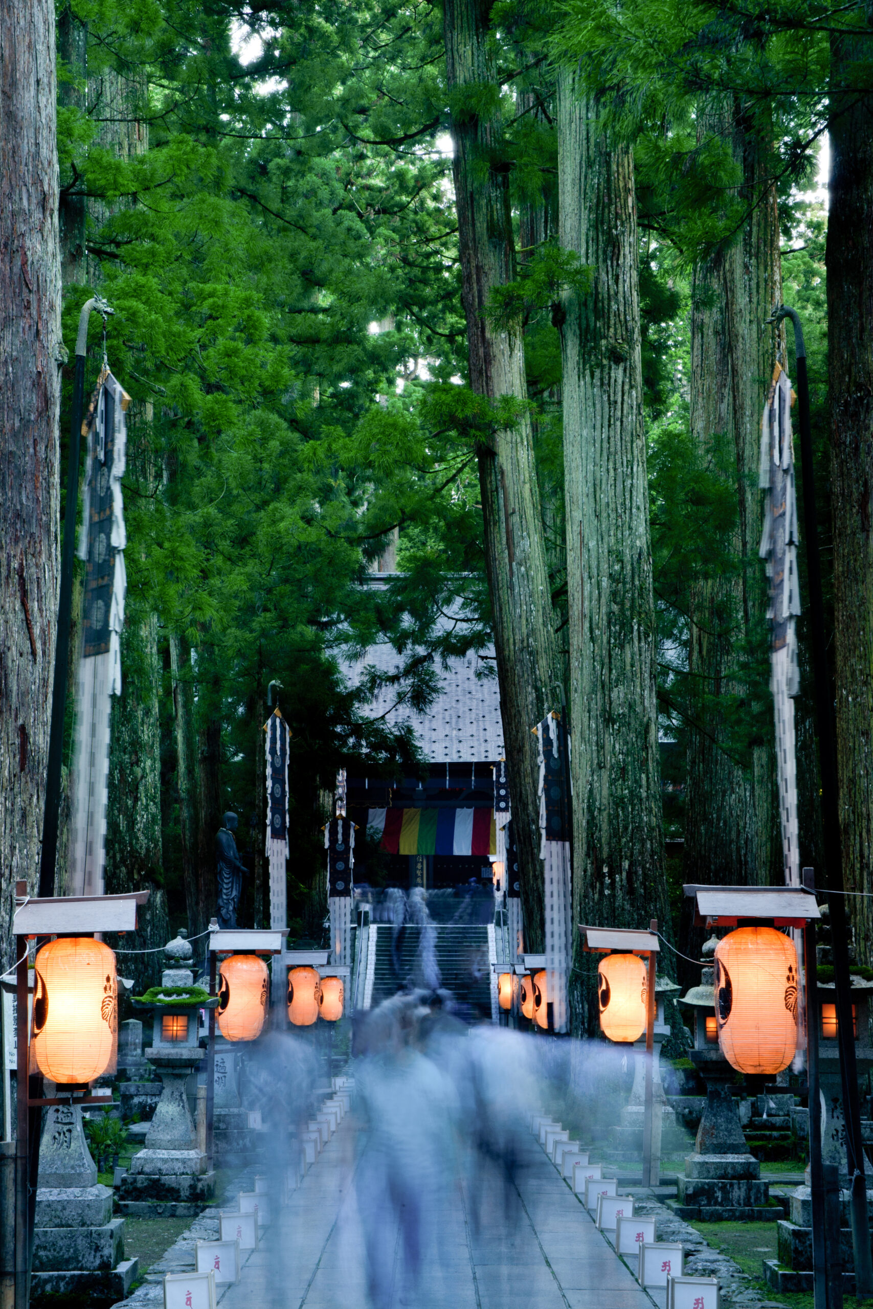 中の橋~弘法大師御廟までを杉や檜の老木に覆われた石畳の参道を歩きます。