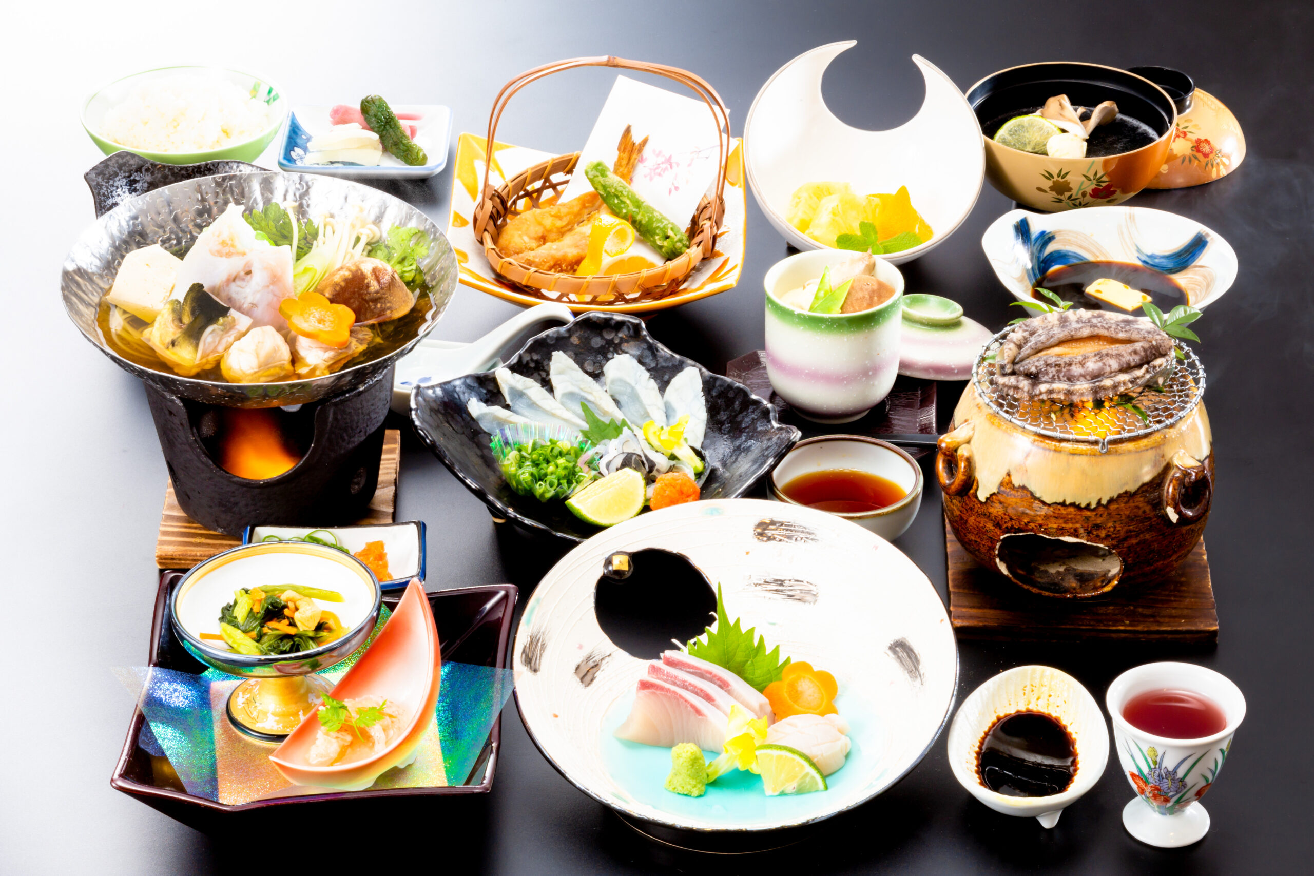ご夕食は冬の味覚ふく3品、鮑付き会席をご賞味