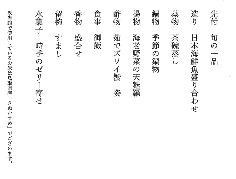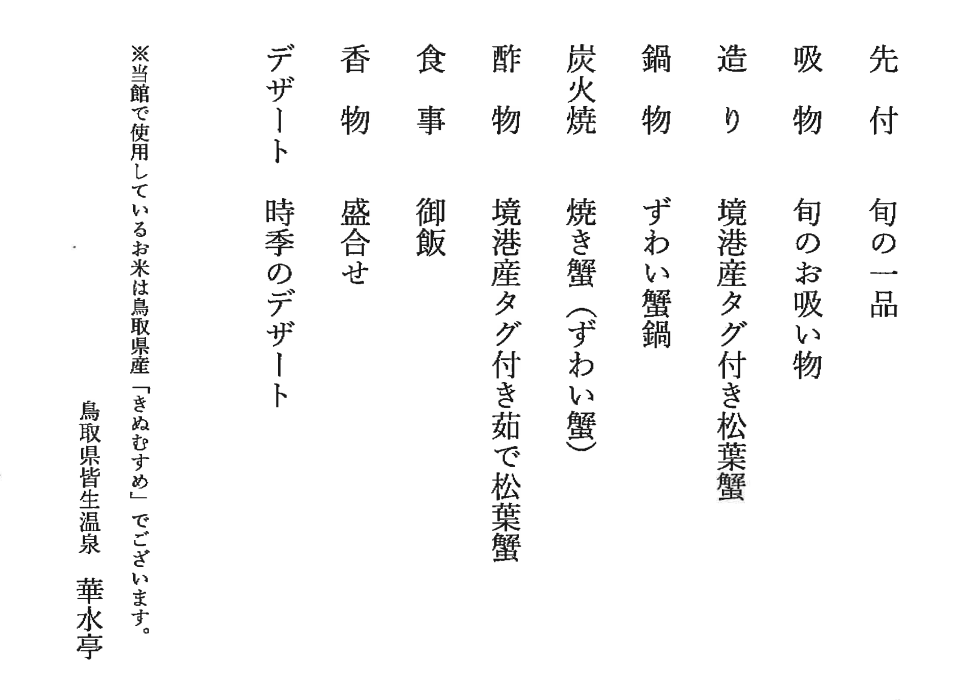 ★さらにランクアップとしてラグジュアリーホテルとして名高い「華水亭」プランもご用意しました。こちらは境港産タグ付き松葉蟹のお造りも!!
